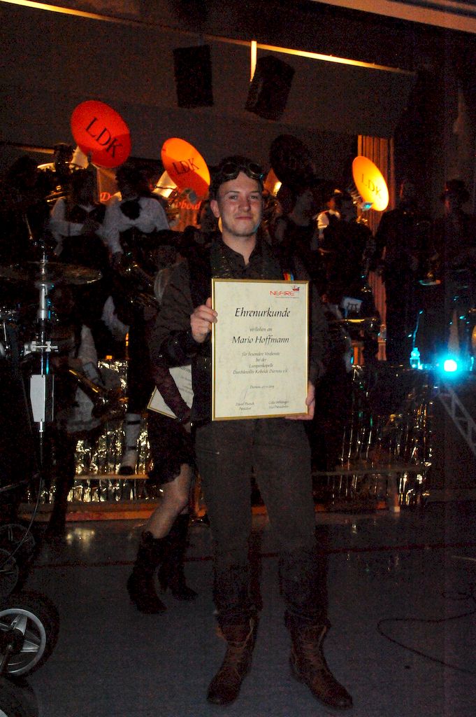 MitgliederAdelberg l Bartholomä l Dürnau l Eislingen l Göppingen l Plochingen l Rechberghausen DürnauLumpenkapelle Durchknallte KoboldePostfach1143 Zunftmeister: Melanie Hoffmann Tel : 0157/36451651 Hier findet Ihr sämtliche Infos zu unseren Veranstaltungen. http://durchknallte-kobolde.de Im Juni 2007 trafen sich zum ersten Mal 15 "durchknallte Kobolde" spontan zu einem Geburtstagsauftritt. Da unsere 15 keine Anfänger mehr waren, sondern aus einem anderen Verein sich gelöst hatten, war dieser Auftritt gar nicht schlecht. Was die Idee einer Lumpenkapelle in den "durchknallten" Musikern entstehen lies. So begannen unsere 15 Gründer ab November 2007 mit dem proben und der Kontaktpflege zu anderen Vereinen. Im Herbst 2008 nahmen wir an der Landesmeisterschaft teil und erreichten "sogar" den 2 Platz. Weiter infos könnt ihr aus unserer Homepage entnehmen.